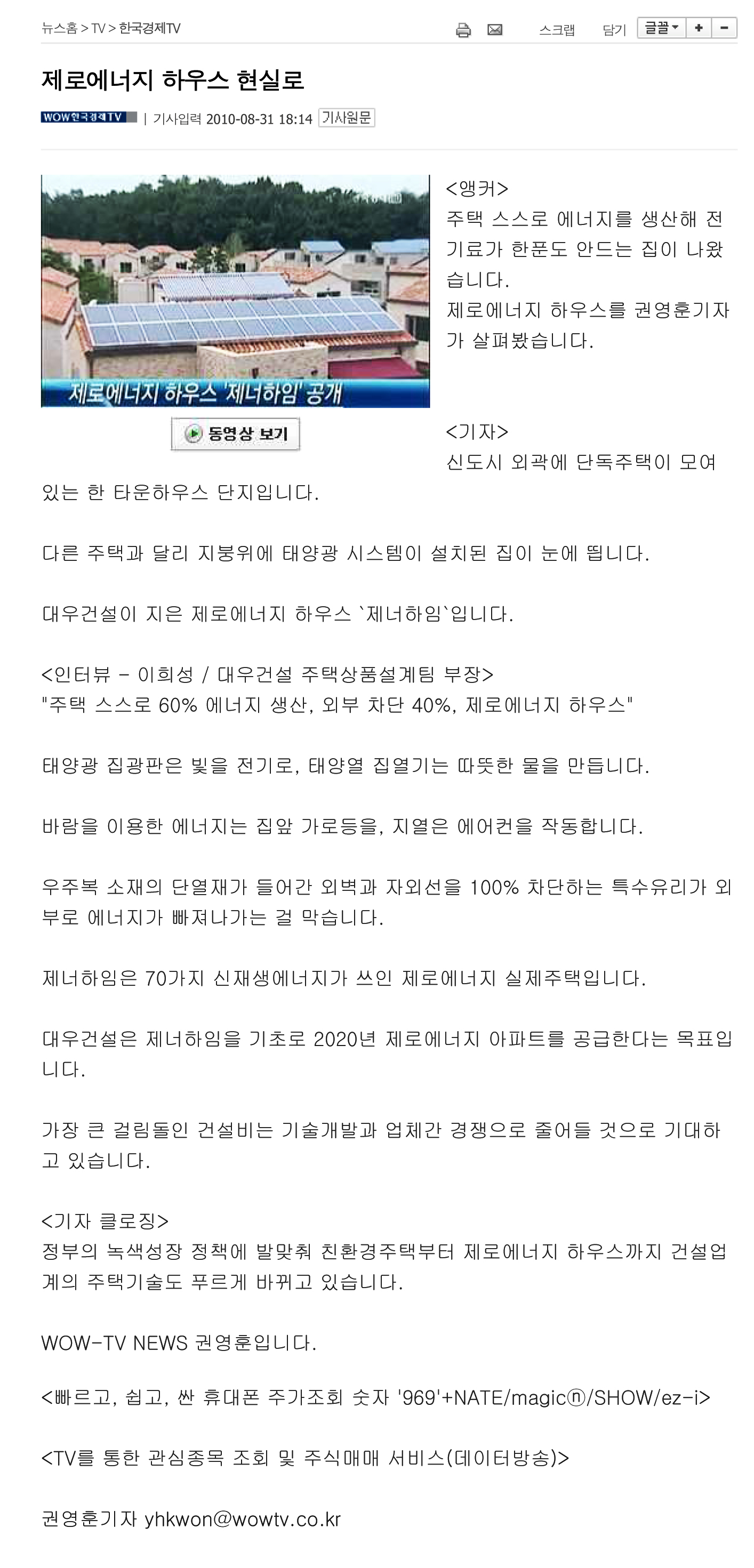 2010³â8¿ù31ÀÏ 'SBSÇѱ¹°æÁ¦TV'¿¡ 'Á¦·Î¿¡³ÊÁö ÇϿ콺'¿¡ ´ëÇÑ º¸µµÀÚ·á